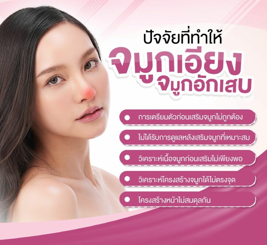 • ไม่ได้รับการดูแลหลังเสริมจมูกที่เหมาะสม