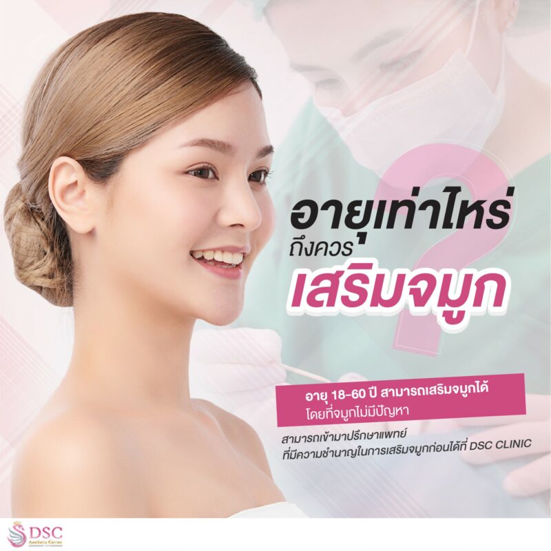 หากใครที่อายุยังไม่ถึงแต่มีความต้องการที่เสริมจมูกสามารถปรึกษาแพทย์ ที่มีความชำนาญในการเสริมจมูกก่อนได้ที่ DSC CLINIC เพื่อที่จะได้คำแนะนำที่ถูกต้อง ในการตัดสินใจค่ะ