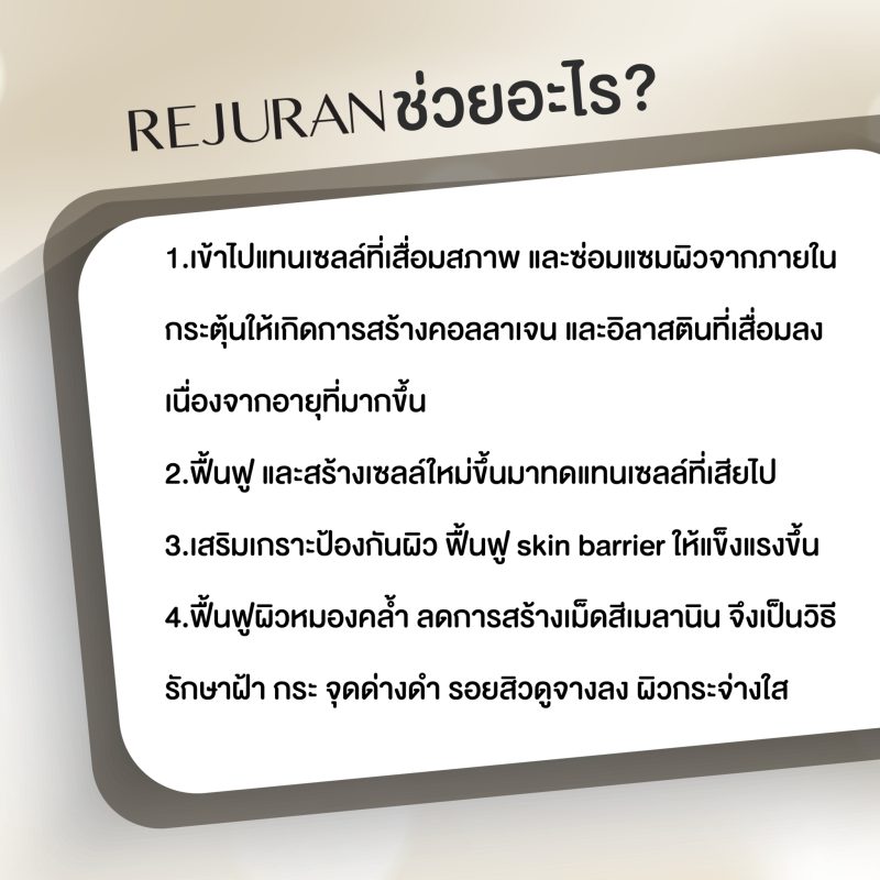 - ฉีดรีจูรันเพื่อซ่อมแซมเซลล์ผิว เพิ่มความอ่อนเยาว์